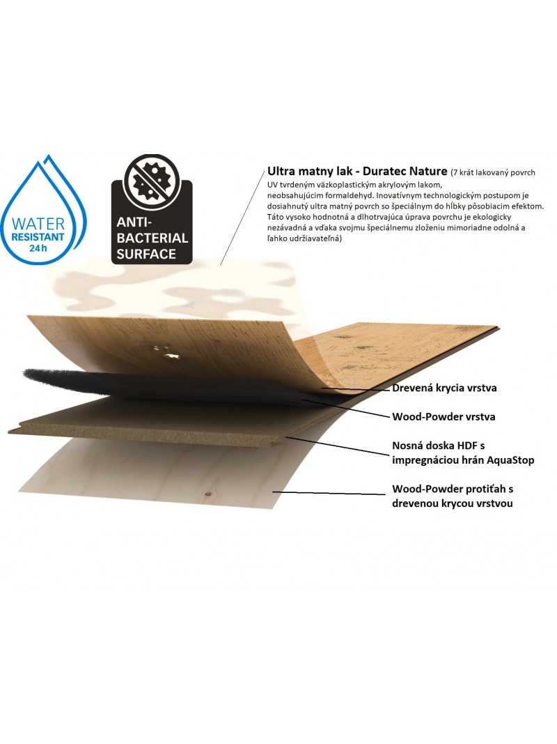 Povrchová úprava: kefovaný, ultra matný lak Duratec